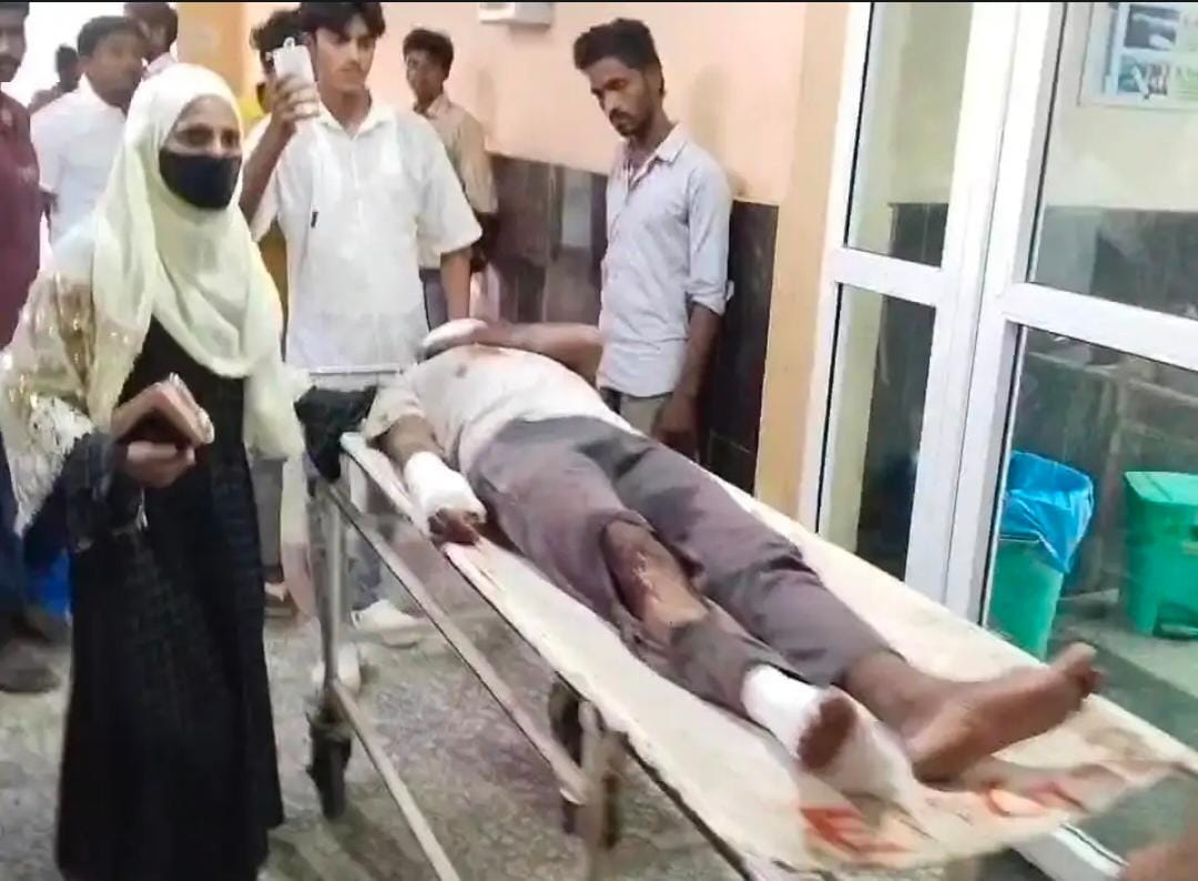 घायल को अस्पताल लेकर पहुंचे लोग। सिंहेश्वर से घर लौट रहे थे