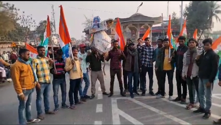 बीपीएससी परीक्षा में धांधली के खिलाफ परीक्षा को रद्द करने और पुनः साफ-सुथरे तरीके से परीक्षा करवाने के मांग को लेकर अभ्यर्थी एक सप्ताह से अधिक समय से शांतिपूर्ण धरना दे रहे हैं। जहां सरकार को छात्रों के समस्याओं को सुनना चाहिए, उनके पीड़ाओं को सुनना चाहिए वहां सरकार पुलिसिया लाठी के दम पर खदेड़ रही है। उन्होंने कहा कि सरकार की तानाशाही को बर्दाश्त नहीं किया जाएगा। बिहार की डबल इंजन सरकार छात्र विरोधी है, शिक्षा और रोजगार विरोधी है। छात्रों के भविष्य के साथ खिलवाड़ कर रही है। बिहार में परीक्षा में धांधली सामान्य सी बात हो गई है। राज्य में छात्रों और युवाओं पर दमनकारी नीति अपनाकर उनके आवाज को कुचलने में सरकार को कोई संकोच नहीं रहा है। जिलाध्यक्ष निशांत यादव ने यह लड़ाई केवल बीपीएससी अभ्यर्थियों का नहीं है, यह राज्य के सभी छात्र और युवाओं की लड़ाई बन गई है। एनएसयूआई इसे मजबूती से लड़ेगी। आक्रोश मार्च में मुख्य रूप से एनएसयूआई जिला उपाध्यक्ष जितेंद्र कुमार, जिला सचिव सोनू कुमार, प्रखंड संयोजक रणधीर कुमार, टीपी कॉलेज अध्यक्ष विभाष कुमार विमल, सचिव संतन कुमार, कुंदन आजाद, नीतीश कुमार यादव, संजीत कुमार, अंशु पासवान, उमेश कुमार, मनीष कुमार, लाल बहादुर, सोनू कुमार, फूलचंद्र कुमार, रवि राज, अमलेश कुमार, रंजीत कुमार, राजा कुमार, निरंजन कुमार समेत दर्जनों एनएसयूआई कार्यकर्ता मौजूद थे।