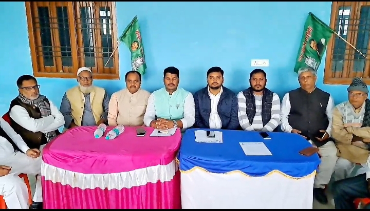 आरक्षण को लेकर सरकार के विरोध में 28 नवंबर को राजद द्वारा जिला मुख्यालय में धरना दिया जाएगा। इस बात को लेकर आज राजद द्वारा प्रेस ब्रीफ़िंग कर मीडिया को जानकारी दी गई है। इस मौके पर जिलाध्यक्ष संतोष सरदार सहित राजद के अन्य नेता और कार्यकर्ता मौजूद थे। जिसमे कहा गया कि बिहार सरकार के आरक्षण विरोधी नीतियों को जनता के समक्ष उजागर करने के लिए राजद पूरे बिहार के जिला मुख्यालय में 28 को महाधरना करेंगी। कहा कि महागठबंधन की सरकार में जातीय जनगणना के बाद 65 प्रतिशत आरक्षण लागू किया गया। लेकिन इधर नीतीश कुमार के द्वारा भाजपा से गठबंधन करने के बाद उसमे अड़ंगा लगा दिया गया है। इसको लेकर राजद द्वारा 28 नवम्बर को जिला मुख्यालय में धरना देकर जनता के सामने सच उजागर करेंगी। बाइट=संतोष सरदार, जिलाध्यक्ष, राजद।बाइट= अनोज आर्य, जिलाध्यक्ष, युवा राजद।बाइट=भूपनारायण यादव, राजद।